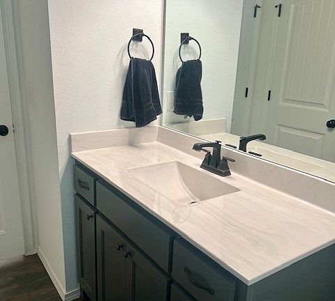 Welcome to this stunning 4 bedroom 2 bathroom home nestled against a beautiful greenbelt. Step inside to an open floor plan that seamlessly connects the great room, kitchen and dining area, all under soaring 12' vaulted ceilings. The modern kitchen is a chef's dream featuring quartz countertops, large island, stainless steel appliances and a spacious walk in pantry. As you enter from the garage you will find a convenient 5' mud bench perfect for storing jackets, backpacks and more. The laundry room is easily accessible off the hallway or through primary suite for added convenience. The primary bedroom boasts high ceilings, ceiling fan and an ensuite bath with a separate shower, soaking tub, and vanity with double sinks. Enjoy outdoor living on the covered porch and patio, ideal for relaxing or entertaining. Plus the neighborhood pool is just steps away, perfect for cooling off on hot summer days. This home is designed for both comfort and style, don't miss your chance to make it yours.