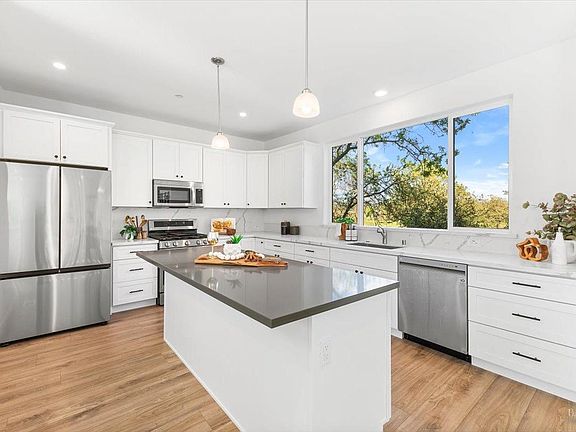 Welcome home to this stunning, nearly new property located just minutes from everything Santa Rosa has to offer yet it feels like you're living in the country with peaceful views right from your balcony. This 3-bedroom, 2.5-bathroom home offers a flexible floor plan perfect for modern living. On the lower level, you'll find a versatile room plus a spacious storage area tucked under the stairs. The main level features a beautifully designed open-concept kitchen, dining, and living area with luxury LVP flooring, quartz countertops, and an abundance of natural light. A private balcony overlooks open space, creating the perfect place to unwind. Upstairs, you'll find an additional bedroom, full bath, and the gorgeous primary suite complete with a large walk-in closet and an elegant en suite bath. VA eligible NO HOA, and move-in ready, this home blends style, comfort, and convenience in one beautiful package.