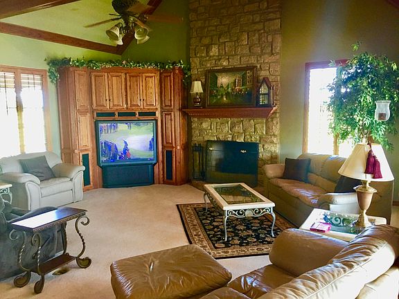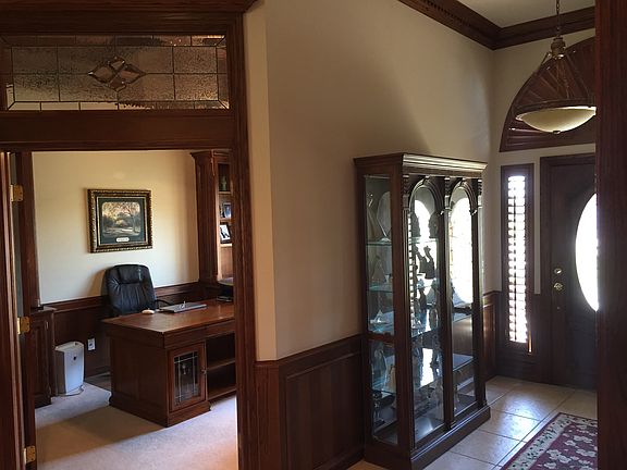 This four bedroom, three bath home was custom built in 2001. Custom oak cabinets including build-ins in living area and study, cathedral ceilings, sub-zero freezer, crown moulding and wood blinds throughout. One story home except for the upstairs bonus room which is ideal for games, exercise or as a reading room. Two patios provide ample views of the golf course. The three car garage allows sufficient room to store your golf cart and there is an in-ground storm shelter in the third garage. For information or to view this property please call 405 823-6798.