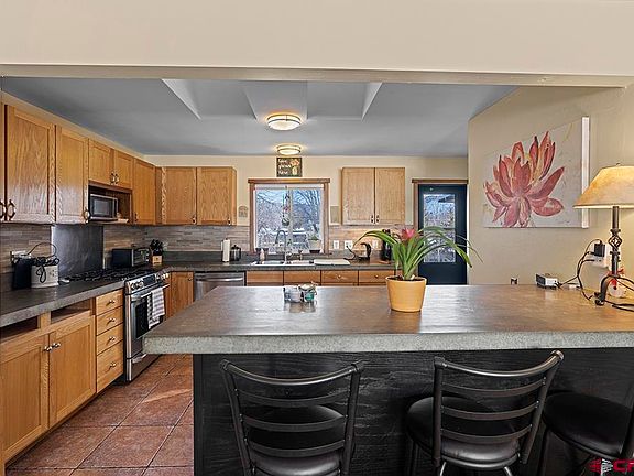 Welcome to a wonderful, single family home located in the ideal location to enjoy some of the best outdoor activities Durango has to offer. This three bedroom, two bathroom house has been tastefully updated and cared for. The property includes a large, fully fenced back yard with mature Aspen trees and plenty of dedicated garden areas. Enjoy the morning sunrise as you sip on your coffee on one of the two new decks from the kitchen or primary suite. As you enter the house, the first thing that you will notice is the amazing open floor plan. With refinished oak floors throughout the dining area, bedrooms, and additional living area, the house provides a classic, warm environment. The 2nd living area is a WOW room with a tiled, floor to ceiling fireplace of modern design, vaulted ceilings with exposed wood beams, and plenty of space for entertaining or enjoying a cozy movie night. Natural light is everywhere and beams into the kitchen providing a daylight feeling. The open kitchen is a delight for cooking and has access to the outdoor area in the back yard perfect for different occasions. Enjoy the concrete counters and large bar with seating and built in storage. The primary suite is a dream. The private sleeping area and walk-out deck highlight the space. The room boasts a walk-in closet, soaking tub, and shower. Two additional bedrooms anchor the west and south sides of the house with quick access to the guest bathroom. The location is KEY. The Overhand Mountain Park Trail System, one of the go-to favorites of locals with almost 300 acres of expansive trails for biking, running and hiking , is accessed just a few blocks from the property. Or walk/bike downtown in a couple of minutes and enjoy the Durango scene. The views are abundant and add to the many wonderful features of this property!