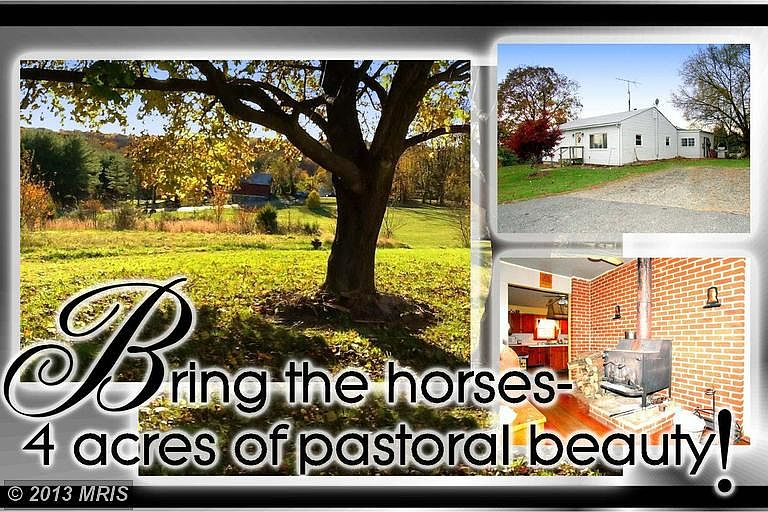 Horses are welcome here. 3 Bedroom Rancher on a large, level lot featuring 4+ beautiful, pastoral acres. Large Shed conveys, as well as Home Warranty (with full price offer). Appliances include Fridge, Stove insert in Kitchen Island, Wall Oven, and Clothes Dryer. Needs work, Sold As-Is, seller will make no repairs. Appraisal completed September 2013 places property value at 238K. Cash/Conv/Reno