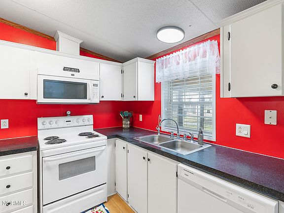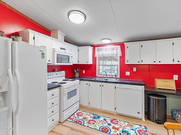 Looking for a beach retreat? This furnished cozy 2 bedroom 2 bath manufactured home is approximately 4.4 miles from putting your toes in the sand at Holden Beach. Enjoy the screen porch on front or the covered porch on the back. Office. Spacious private bathroom and primary bedroom with walk-in-closet. In 2022, replaced carpet with LVP flooring, both bathrooms have no flooring, sinks, vanity's and toilets, replaced-updated to LED lights in bathrooms and kitchen, repainted interior, replaced dishwasher, washer and dryer. Updated furniture in 2023. The fenced back yard encompasses the covered drainage easement. Carport, golf cart building and metal storage building in back yard for extra storage. The established HOA covers road and common area maintenance. Home connected to well water and there is a water softener under kitchen sink. Public water is not available. Recorded covenants. Seller will provide list of exceptions. Fireplace in Living room needs to be converted to electricity, flue capped when roof put on.