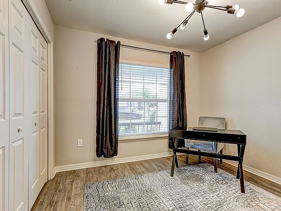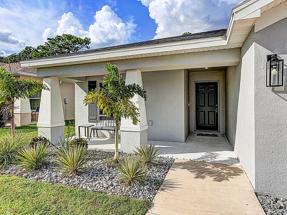 Designed for your modern lifestyle, this fantastic 4-bedroom, 2-bathroom rental home offers an open living area with volume ceilings. The space is comprised of a spacious gathering room, a casual cafe/nook, and a kitchen featuring a convenient counter-height bar. This split floor plan has room for everyone. The primary suite boasts a walk-in wardrobe, a private bath with dual vanities, a relaxing garden tub, a decorative tiled shower, and a dedicated linen stack. Enjoy outdoor living on your charming front porch and the spacious covered lanai! Pet-friendlybring your furry companions along!