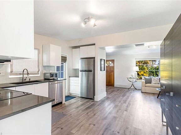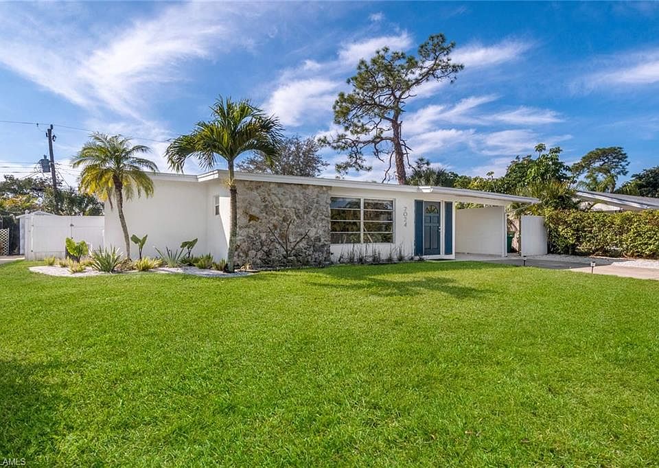 Superb & sophisticated renovation in the super hot & popular Brookside area by one of Naples top designers. Bike or scooter 1.5 miles to Downtown while enjoying a private yard, no condo fees, and the freedom of single family living. New appliances, quartz counter tops, carport, stylish tile floors, bathrooms, and accessorizes. Have BBQs with your friends or let your pet play all day in the large private fenced in yard. This is an up & coming intown area with an exciting future! Quiet street in a great neighborhood. Plans for a major expansion by one of Naples best architects available.