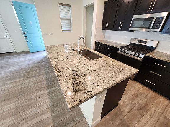 The kitchen comes equipped with stainless steel appliances, granite countertops, a large center island with a sink, and plenty of cabinet space, refrigerator included. Downstairs also features a full bathroom and a versatile bedroom great for a home office or quiet retreat.