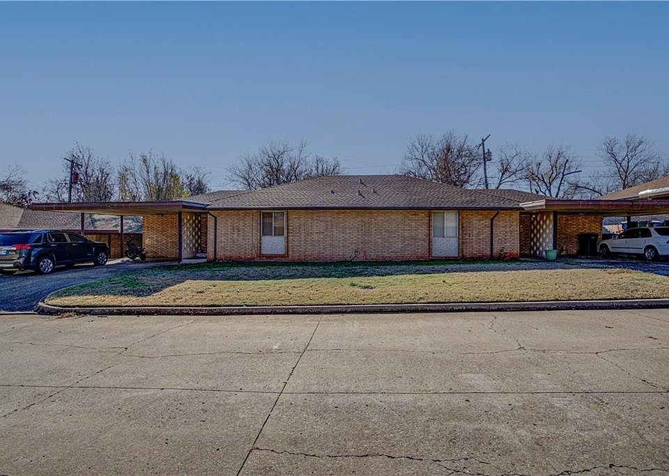 Mid-century modern duplex in OKC's Urban core. Close proximity to OCU and Plaza District. Both sides are the same exact floor plan. Very spacious living and dining area with patio door out to the courtyard. Kitchens have a lot of cabinet space, electric stoves, and dishwasher. Primary bedroom has a half bathroom and large closets. Second bedroom is across the hall from primary bedroom. Hall full bathroom has single vanity with tub/shower combo. Laundry is a stackable unit in the hallway. There are wood laminate floors throughout most of both units. 2-car carport is attached to each unit with decorative brick wall dividing the front entrance. This street is a dead end with all duplex housing. Both units are occupied, please do not disturb tenants.