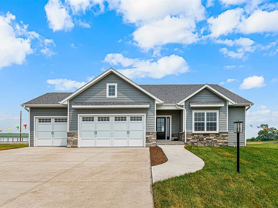 2023 Rempel Construction Parade Home!  Get more for your money on this 1 acre, ranch style, 3-car garage home that is located in between Iowa City and Kalona just East of Frytown.  It's perfect conbination of small town living near all major conviences, all on hard surface roads.  The main level offers an open floorplan with a large great room with fireplace.  The kitchen has a center island with breakfast bar and a large pantry.  The spacious primary bedroom has a boxed-tray ceiling and a primary bath with walk-in tiled shower.  The primarcy closet opens to the laundry / mudroom area.  The walkout lower level opens to a patio and has tons of storage.  Quality Rempel Construction throughout!!!
