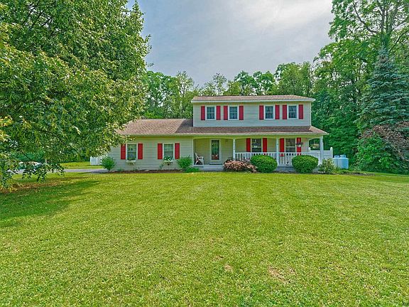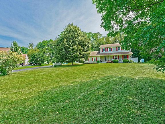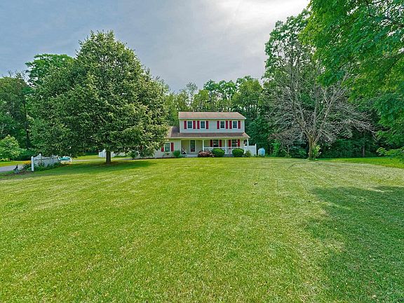 Country charm abounds in this beautiful 4 bedroom, 1.5 bath colonial in the heart of the Pinebush Preserve in the Town of Guilderland. Situated on a 1/2 acre deep lot at the back of a private cul-de-sac surrounded by perennial gardens. Completely updated and repainted throughout. Features brand new country kitchen with granite countertops, maple cabinets, stainless steel appliances and crown moulding. Updated bathrooms. Large dining room with french doors, library/home office and living room with fireplace and bay window offers space for everyone. Lovely front porch, expansive back deck and AG pool are perfect spots to enjoy the scenery. Excellent Condition