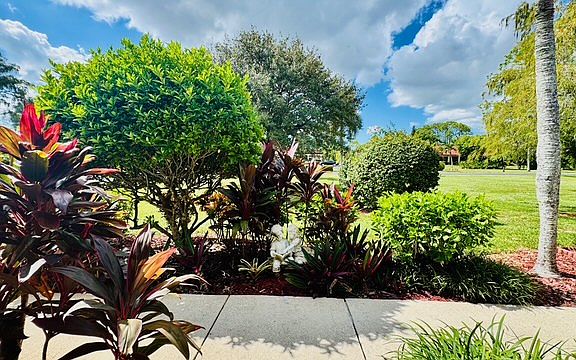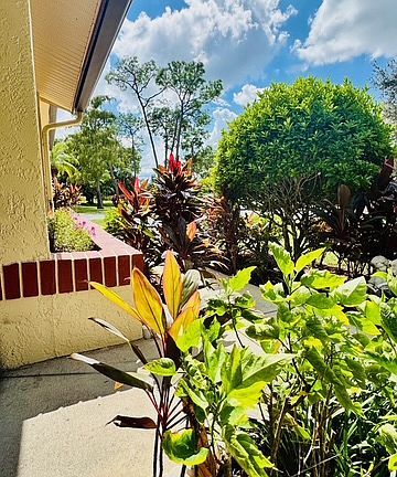 Enjoy the lush landscaped views from the screened Florida Room of this spacious 2-bedroom, 2-bath home. The open floor plan features vaulted ceilings, walk-in closets, and dual sinks in the primary suite. The kitchen has been recently updated with new quartz countertops and modern finishes.
