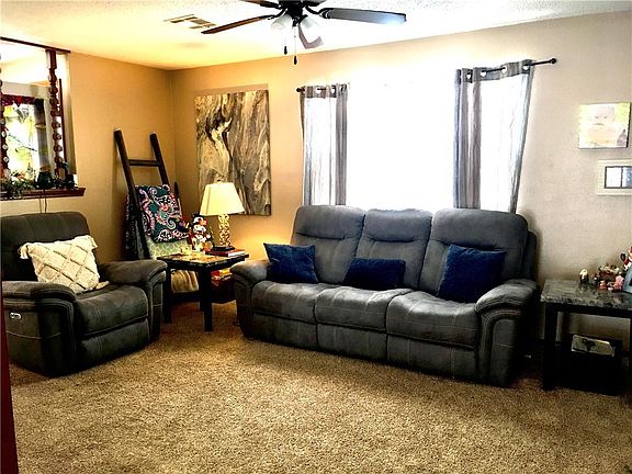 This home has a little bit of country and city life, close to town and canyon views. Snuggled among mature trees for that country feel plus the sunsets from the updated kitchen and covered deck just off the dining room are just amazing. Roof and windows were replaced in 2017, New Hot water Heater in 2018, New wiring on Pump house, new garage door lift, so you can mark these off your worry list. Full size laundry room tucked right in among all 3 spacious bedrooms to make things easy for you. Kitchen has granite look countertops, stainless steel appliances and a pass thru bar w/ seating right into the dining room. Open floor plan lets everyone enjoy the views. Back Yard has been partially fenced for your furry friend or offspring that needs to be kept safe. 2 storage buildings. Lots of room out back to enjoy the views. Did I mention the Sellers are throwing in a Home Warranty for the first year. They don't know of any problems but want you to have peace of mind to enjoy this home.
