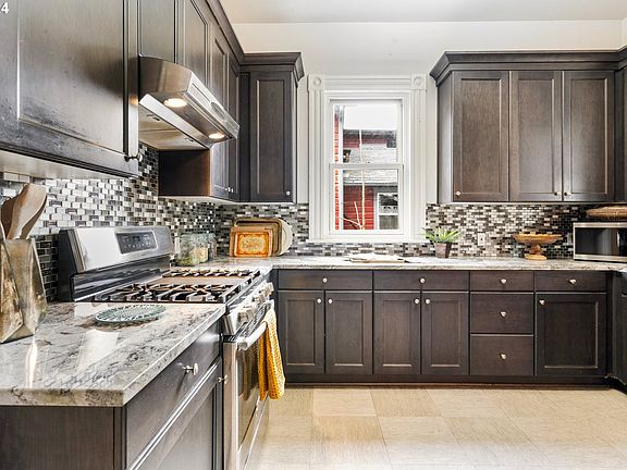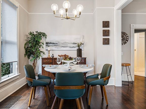 Welcome to this charming Victorian home that seamlessly blends original features w/thoughtful modern updates. Step inside to discover gleaming hardwood floors, complemented by granite countertops & stainless steel appliances in the kitchen. The gas range is perfect for culinary enthusiasts, while the abundance of cabinets & counter space ensures convenience & functionality. Elegance abounds w/decorative moulding & built-ins, adding character & style to each room. Natural light floods the interior, courtesy of the numerous windows, creating a bright & inviting atmosphere. Unwind in the spacious primary ensuite w/walk-in closet, & large windows looking out to the West Hills, a perfect retreat after a long day. The sizable basement offers endless possibilities with exterior entrance & is partially finished, providing extra living space or storage options. Enjoy the outdoors on the porch, from the tranquil patio, or gathered around the firepit. This home offers a perfect blend of Victorian charm & modern comfort, making it a must-see! Future area development plans have been approved; ask your favorite realtor for more details! [Home Energy Score = 1. HES Report at https://rpt.greenbuildingregistry.com/hes/OR10209588]