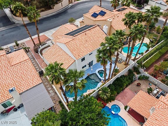 Welcome home to this beautifully upgraded 4-bedroom, 3-bath home on a spacious 6,098 sqft lot in Green Valley South Parkside Terrace. Features an open, functional layout with a courtyard entry, vaulted ceilings, lots of natural sunlight, downstairs bedroom & full bath, perfect for guests or multigenerational living. New windows & recessed LEDs throughout. Fresh paint, Travertine tile flooring & 2 new A/C dual zone units. Kitchen boasts granite counters, island, upgraded cabinets, stainless steel appliances, eat in kitchen which opens to family room with fireplace. Large primary suite includes a renovated bathroom with California W/IN closet, soaking tub & separate shower. Upgraded fixtures in every bathroom. 2 additional bedrooms upstairs with a full bath. Enjoy the outdoor oasis with solar heated pool, spa & waterfall feature & upgraded exterior lighting. 3-car garage, mature landscaping, & walking distance to top schools, parks, & shopping. 3D tour & professional photos available.
