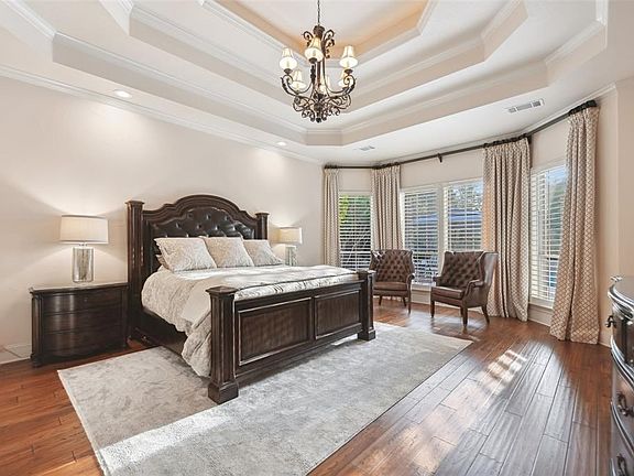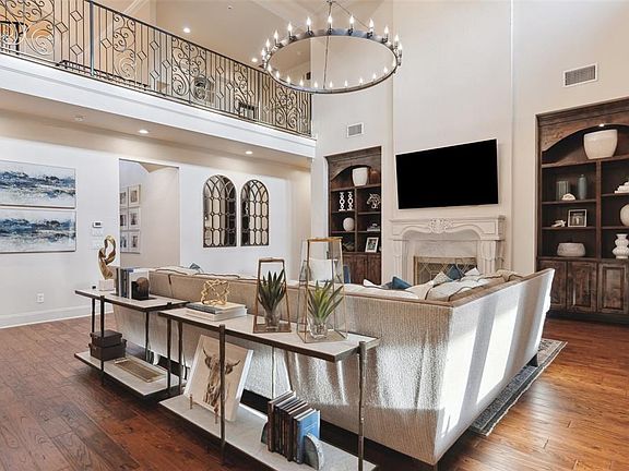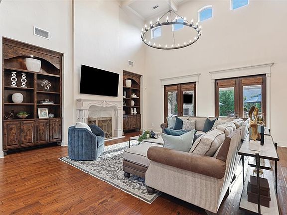 Welcome to this remarkable stately custom home nestled on a private corner lot! Architectural details abound in this exceptional floor plan, showcasing tray ceilings, wood beams, brick accents, custom ironwork, hardwood floors, and extensive millwork. The heart of the home lies in the chef's kitchen equipped with a 6-burner gas cooktop, double ovens, Miele coffee bar, large island, and oversized pantry. It seamlessly opens to the spacious family room. The main floor also features a stunning primary bedroom, private guest suite, and exquisite two-story office. Entertaining is a breeze with a first-floor media room adjacent to the wet bar. Upstairs, enjoy a large open study center, office library access, 3 additional bedrooms, a generous game room, and bonus room. The private backyard offers resort-style living with an extraordinary pool and spa. The covered outdoor living area boasts retractable screens, a gas fireplace, TV, bar area, gas grill, and fridge. 2023-10-28