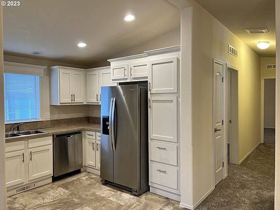 The excitement of coming home will never change here. Newer 2018, 2-Bedroom, 2 Full Baths, with a HEAT PUMP. Lovely 55+ community in Oregon City's Cherry Lane Park . A picture is worth a thousand words. Take a look at these photos and fall in love with your beautiful and affordable home. All Stainless steel Appliances included, many windows to bring in the natural light, open floor plan and high ceilings. MB has a double sink vanity, walk-in shower and tons of cabinet space. Second bath has a tub/shower combo. Too many upgrades to list them all. This home offers a private backyard, completely landscaped, with a new carport! Large shed that has power. Space rent is $667 per month.