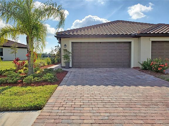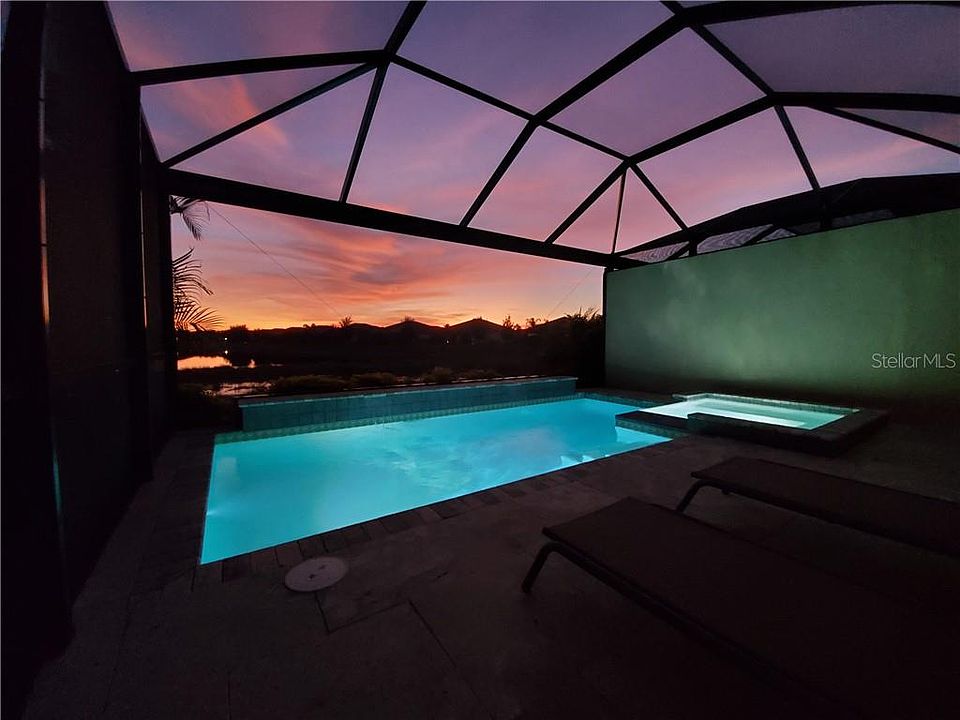 COZY and BRIGHT POOL HOME! This stunning open plan Orchid villa in Gran Paradiso has ambience and upgrades like no other. It offers 2 bedrooms, 2 baths w/den, 2-car garage, and a luxurious custom pool w/spa for enjoying the fabulous water view. Inside, you will find refined detailing, such as crown moldings, granite countertops in both kitchen and baths, gray porcelain wood-look floor tile, and stainless-steel appliances. Special features of this one-of-a-kind home include: wood ceiling details in living areas, lanai, and front entry; under cabinet kitchen lighting; a tasteful backsplash; recessed lighting on the lanai, as well as designer ceiling fans and lighting throughout; there is a motorized retractable hurricane screen for the lanai; plus screening and lovely, jasmine filled trellis at the front entry; marble look bathroom tiles; frameless glass shower surround; luxury custom closets; and so much more (over $100k in installed upgrades!) The home sits on one of the best homesites w/southern facing, long water view of the pond behind, so enjoy relaxing on the generous lanai listening to the pool's waterfalls, or join in one of the multitudes of neighborhood activities. Gran Paradiso at the West Villages is a maintenance-free, resort style community boasting a free-form resort pool with beach entry, fitness center, tennis, pickleball, even locker rooms with steam rooms and saunas. This meticulously cared for villa is the perfect Florida-lifestyle home. Seeing is believing. Come see for yourself today!