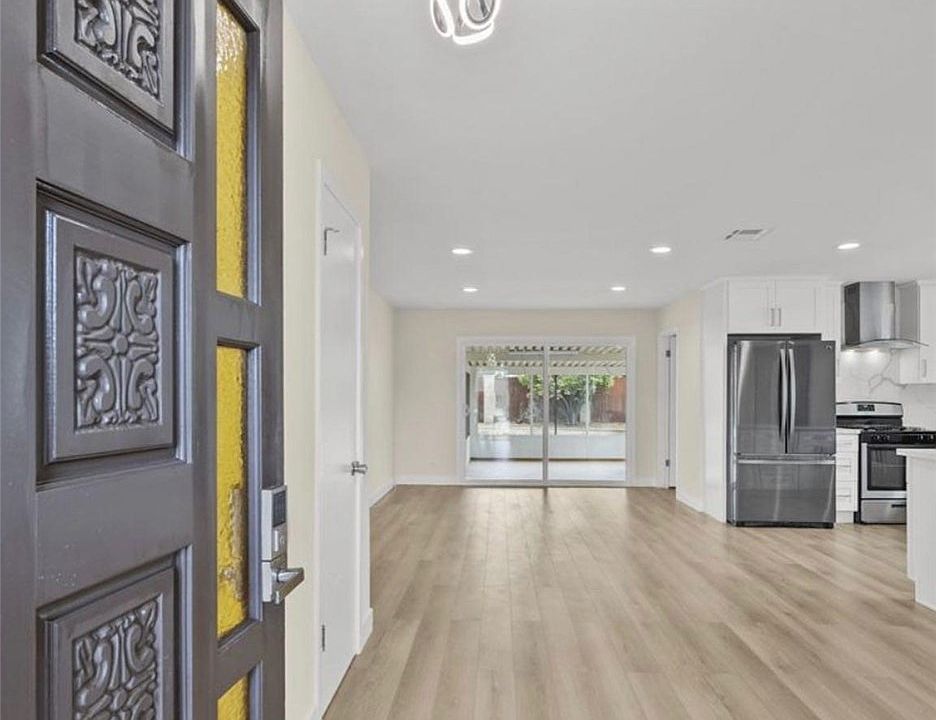 Beautiful fully remodeled home nestled on a quiet street. 4-bedroom, 2-bathroom home with an open floor plan, laminate flooring, recessed lighting, and plenty of storage space throughout. Bright and spacious bedrooms, with updated light fixtures; primary bedroom offers a walk-in closet and master bathroom. Both bathrooms showcase modern fixtures and offer ample storage space. Private backyard is spacious and features a large deck patio complete with a pergola, perfect for outdoor entertaining or simply enjoying some peaceful moments. Conveniently located near Winnetka Recreation Center, Jons Market, Brent’s Deli, gas stations, markets, The Northridge Fashion Center, Porto’s Bakery and Café, Costco, and multiple restaurants. BONUS: Seller has approved plans from the city for a garage conversion to ADU. Great for extended family or some rental income on the side!