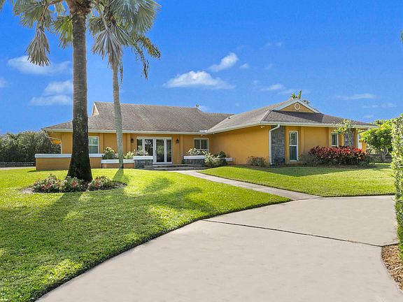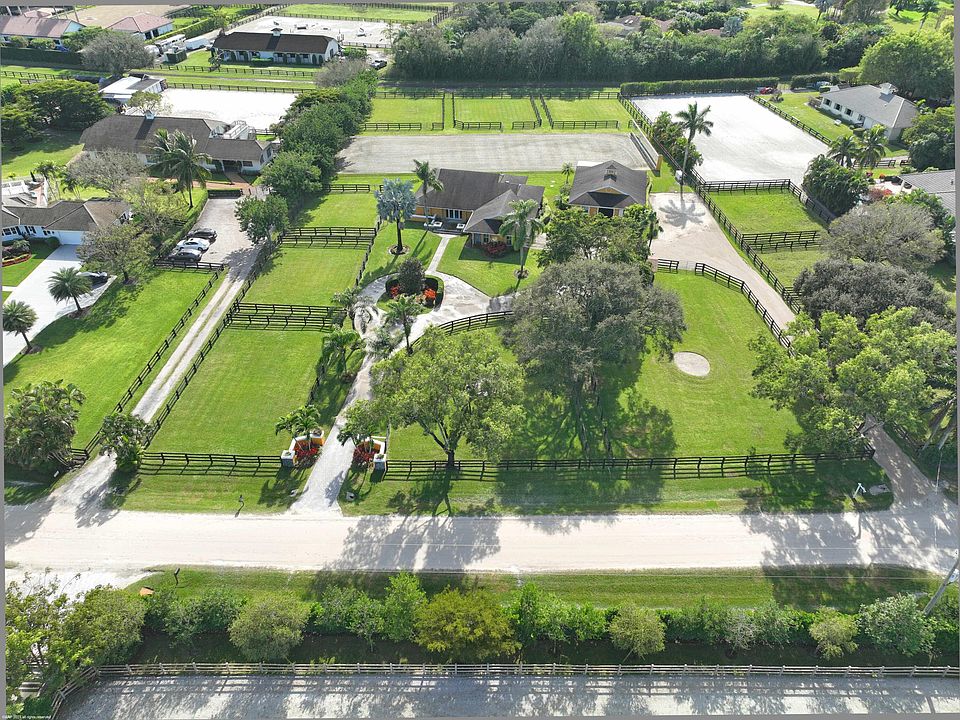 Best priced farm in Saddle Trail! Amazing opportunity to own this magnificent renovated dressage farm for under $4M. Nestled within the Saddle Trail, you come upon this stunning property. The open floor plan make the home a joy to entertain. The gourmet kitchen features custom handmade tiger maple cabinets & built-ins. All windows have plantation shutters & the property is equipped with impact windows & doors; whole home & barn generator; full indoor & outdoor camera system; 2 wells & 8 large paddocks. A true equestrian will appreciate the 5 stall barn, featuring an apt, feed & tack rooms, fly system & soft stall. You will enjoy the incredible footing on this regulation dressage arena with Riso footing & mirror backing up to the bridle path. Property has ability to add more stalls