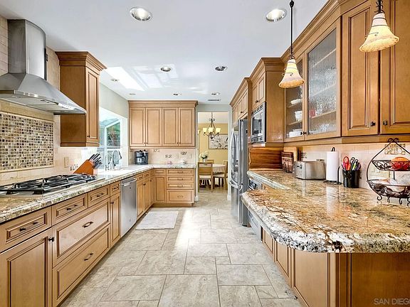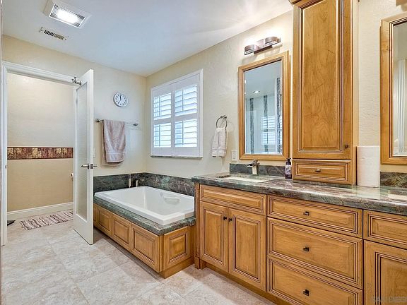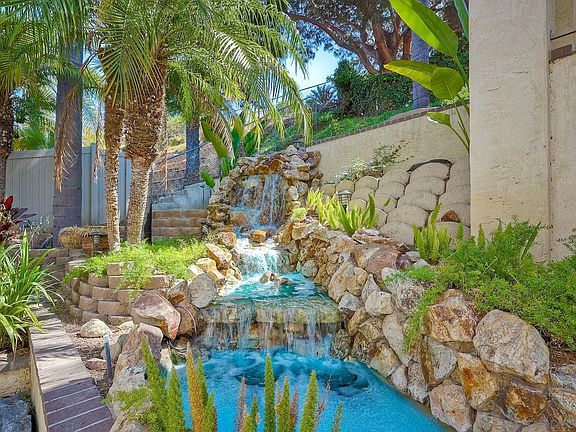 Discover this gorgeous home in the Cottonwood development, boasting 2,743 square feet of highly upgraded elegance on a 9,000+ SF lot, with paid-for Solar. Enter through a grand foyer that leads to a formal living and dining room, perfect for entertaining. The highly upgraded kitchen is a culinary delight, featuring stunning Brazilian granite counters, Italian tile floors, stainless steel appliances, custom cabinetry, and a garden view window. It seamlessly flows into a large family room with a cozy fireplace, custom bar, & an adjacent bonus room with tons of extra space. Retreat to the luxurious master suite, complete with a separate seating area, high ceilings, dedicated mini split, two walk-in closets with awesome built-ins, and a private balcony overlooking the beautifully landscaped backyard. The master bath is a spa-like oasis, equipped with a Jacuzzi tub, large walk-in shower, heated tile floors, and Brazilian granite countertops, all enhanced by upgraded custom cabinetry. Step outside to enjoy a patio complete with a fire pit and an impressive outdoor waterfall, all in a manicured, low-maintenance setting with thoughtful lighting. The upper terrace is perfect for entertaining in any season, providing a covered and illuminated space for gatherings. Additional highlights include paid-for solar, a security system, efficient heating and AC, and a 3-car garage featuring ceiling storage racks and finished drywall. Shutters, multiple space saving pocket doors, two whole house fans, and ceiling fans throughout ensure comfort year-round.