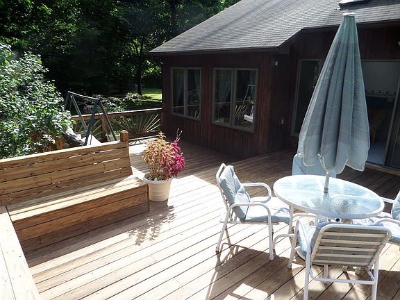 This solid built Triou Custom Home offers 3 bedrooms 2 full baths and is over 1900 square feet. Large private wooded lot is 3.17 acres. Laundry room is off of the kitchen. Glass sliding door off dining room leads to beautiful sunroom and then to large bi-level deck. 2 bedrooms on first floor. Private 2nd floor master suite. Loft area. Finished walk out basement provides plenty of room to entertain. Pool table in basement included.