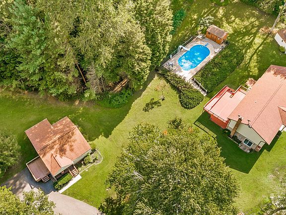 This 5.23 acre piece of paradise nestled at the end of a quiet cul de sac includes TWO homes, an in-ground pool, and plenty of open field and wooded acreage for all of your outdoor hobbies. The primary home has 4 bedrooms, 2.5 bathrooms, finished lower level, and attached two car garage.The expansive deck off the kitchen has been recently refinished and is the perfect place to sip your morning coffee in peace or host a pool party. The secondary home is 782 sq ft with an open floor plan, two bedrooms, full bathroom, and laundry room with full size washer and dryer included. Patio doors off the eat-in kitchen lead out to the secluded deck. Brand new septic systems were just completed for both homes. New windows installed in both homes in October 2022, roofs recently replaced on all three sheds, among many other recent upgrades and improvements. The property has been lovingly maintained. Create the family homestead you’ve been dreaming of or use the secondary house as an investment opportunity. Tucked away from the hustle and bustle with an easy commute, this property has it all.