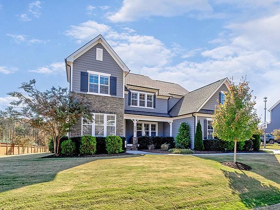 Introducing an exquisite residence exuding elegance and luxury, located in a convenient Apex location. This distinguished home offers 4 bedrooms and 4 full bathrooms. There is a main floor bedroom and ensuite bathroom-perfect for guests.  Spanning 4420 square feet and situated on a generous, tree-lined, .82 acre lot, this property provides an expansive and opulent living space. Step inside to discover a flood of natural light that illuminates the open living area, showcasing the stunning floors & cabinetry throughout. The home features plantation shutters, custom built-in shelving & cabinets, and a private outdoor space with a delightful screened porch. The gourmet kitchen is a chef's delight, complete with a gas cooktop, stainless appliances, a large gathering island, a wine fridge, and a butler's pantry. On the second level, the primary suite is a serene retreat, boasting a walk-in shower, soaking tub, dual vanities, and a substantial walk-in closet. A huge bonus room, flex room with closet, and 2 additional, spacious bedrooms are also located on the second level. Noteworthy features include a Kinetico water softener unit with a drinking water osmosis system. The entire home provides unparalleled comfort and convenience. Nestled on a tranquil street in lovely Senter Farm- which features an adorable gathering pavilion and serene lake, this convenient location provides easy access to downtown Raleigh, which is less than 20 minutes away. With decorator touches throughout, a 3-car oversized garage, and beautiful landscaping, this residence embodies sophistication and comfort. Experience the epitome of refined living.