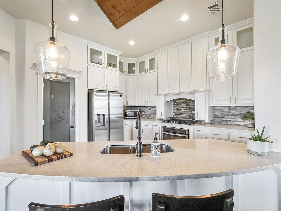 2nd Chance!! Back on Market at No Fault of Sellers. No HOA, No MUD, No City Tax. Nestled on one acre this 3-bedroom, 2.5-bath home transcends the ordinary. Step inside to discover a dedicated office, perfect for those seeking tranquility when working remotely. The elegant formal dining room sets the stage for unforgettable gatherings with hand-cut brick floors and custom woodwork. Calling All Cooks to the chef's kitchen with a gas stove and the perfect triangle design. In the Primary Suite, you'll find a spa-like bath complete with jetted tub and custom closet you won't want to go without. Between the secondary bedrooms, you'll find a unique media room perfect for making a podcast or musical jam session. From the covered back patio, enjoy morning coffee and space to entertain family and friends. Bonus Features: Custom Wine Closet, Half Bath in Garage, RV Electrical Hookup, Extra Wide Driveway, Backyard storage building. No detail has been overlooked in creating this custom residence.