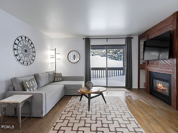 The living room provides a comfortable haven to relax after a day of outdoor activities. Imagine unwinding on a plush sofa in front of the crackling fireplace, enveloped by the soothing ambiance. The living room also offers access to a private balcony, where you can savor breathtaking views of the surrounding mountains and the Canyons area.