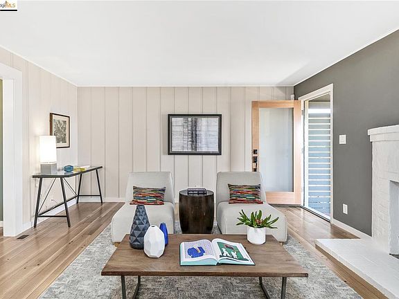 Stunning Single Level Home in Prime El Cerrito! Two roomy bedrooms, one newly-renovated full bathroom. Completely remodeled kitchen with custom breakfast nook, new stainless steel appliances, and abundant counter space. Views to the bay, bridges, and San Francisco, floor-to-ceiling windows in the living room & dining room allow abundant natural light and a true indoor-outdoor flow. Professional landscaping in the front and back yards with mature trees and established perennials. Gleaming hardwood floors throughout and new tile floor in bathroom. Attached single-car garage and deep setback from the street. Easy access to parks, shopping, and public transportation. Zoned for top-performing Madera Elementary School (buyer to verify with school district).
