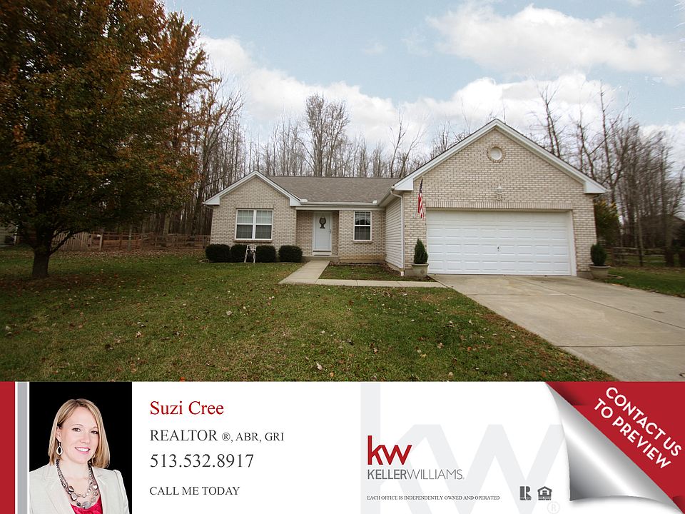 Perfect ranch situated on (nearly) one acre wooded lot w fenced private yard and mature trees. Newer carpets, flooring, window blinds and newer paint throughout. Vaulted ceilings. Newly remodeled eat-in kitchen w 42in cabinets and added workspace. Newer rear deck and newer roof. Finished basement w built-in fireplace, lots of storage. Super clean!