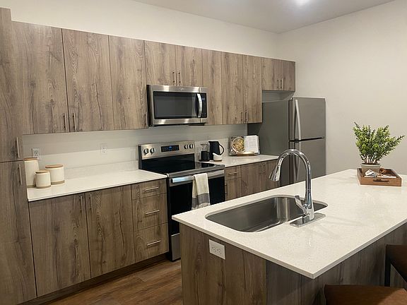 Eat-at counterPrivate patio or balconyFull-sized washer and dryerStainless-steel appliancesSoft-close cabinetry