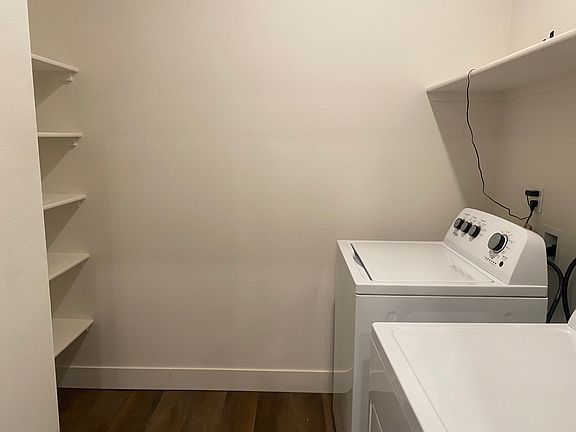 + Full-sized washer and dryer in spacious laundry room with built-in shelving