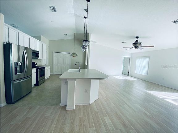 MOTIVATED SELLER!! Welcome home! This 3 bedroom, 2 bathroom, 2 car garage home offers 2,020 sq. ft of living space! Upon entering the home, you're greeted with cathedral ceilings, recessed lighting, tons of natural light, a formal living room off to your right, and a formal dining room off to your left. The well laid out kitchen is a chef's dream! Enjoy a large center island with a built-in sink and breakfast bar, stainless steel appliances, a closet pantry, and ample counter and cabinet space. Entertain in the kitchen while overlooking the large family room. The oversized master bedroom is equipped with a huge walk-in closet. The master bath is complete with a garden tub, stand alone shower, and built-in vanity. Both guest bedrooms are oversized; complete with generous sized closets. The guest bath has new waterproof laminate flooring and a shower/tub combo with built-in shelving. Indoor laundry room for your convenience. Enjoy privacy as your relax on your back patio and soak up the Florida sun or grill/bbq while you entertain guests. Storm shutters in garage convey. Conveniently located near all shopping, restaurants, hospitals, beaches, and not too far from the amusement parks and fun. Schedule your private showing today!
