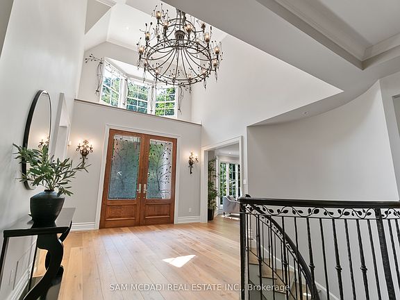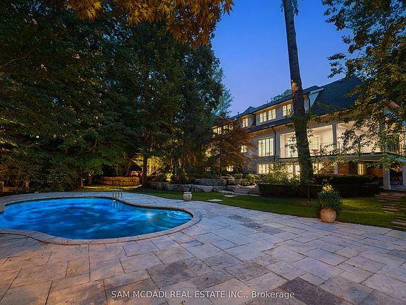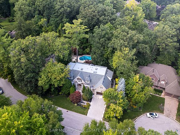 Welcome to 2025 Heartwood Court - a truly exceptional custom-built estate home, perfectly positioned near the end of a quiet cul-de-sac on a serene 123x180 ft lot in the prestigious Gordon Woods community. Surrounded by towering trees and lush greenbelt, this residence offers over 7,000 sqft of thoughtfully designed living space. Crafted with the finest materials and impeccable craftsmanship, it is built for both everyday comfort and unforgettable entertaining. The grand living room features a stone fireplace, floor-to-ceiling windows, French doors, and a seamless walkout to the expansive wraparound deck. The custom kitchen is a showpiece, with striking onyx counters and backsplash, a large centre island, Wolf stove, built-in appliances, and a breakfast area that also opens to the deck - perfect for indoor-outdoor entertaining. Upstairs, the primary suite spans nearly 1,000 sqft, complete with coffered ceilings, his-and-hers walk-in closets, a cozy gas fireplace, and a spa-inspired 5-piece ensuite with a soaker tub, walk-in shower, double vanity, and built-in dresser. Three additional bedrooms, each spacious and light-filled with walk-in closets, complete the upper level. The fully finished basement is designed for full family enjoyment, offering a stunning wine cellar, theatre room, rec room, home gym, guest suite, full wet bar, and a walkout to the patio. Outside, a true backyard oasis awaits with an in-ground pool, hot tub, outdoor kitchen with built-in BBQ, professional landscaping, and ambient lighting that transforms the space by night. Ideally located near the QEW, Trillium Hospital, Mississauga Golf & Country Club, Port Credit Village, GO transit, University of Toronto Mississauga, top-rated schools, shopping, fine dining, and just a short drive to downtown Toronto. Convenience, timeless design, and resort-style amenities come together in this extraordinary estate to offer an unmatched living experience.