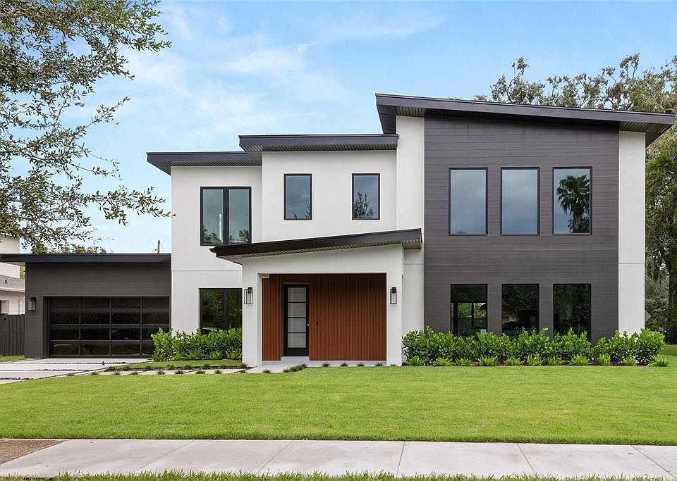 Crafted by a family-owned, up-and-coming builder known for their dedication to design and functionality, this newly constructed contemporary home in the heart of Winter Park, Florida, is a testament to quality and craftsmanship. Every detail in this 3,620-square-foot residence reflects a commitment to modern living, with warm, inviting finishes that create a perfect blend of style and comfort. Featuring 4 bedrooms and 4 full bathrooms, including a versatile first-floor bedroom that doubles as an office, this home is nestled in a vibrant, rapidly growing neighborhood. You’re just a short stroll from AdventHealth Hospital, Ward Park, and the scenic Cady Way Trail. The renowned Park Avenue, with its boutique shops and gourmet dining, is only 5 minutes away, offering the best of Winter Park living. Step inside to an open floor plan that exudes modern luxury. The first-floor features soaring 10-foot ceilings, custom steel stairs with solid oak treads, and exquisite wood flooring throughout. The heart of the home is the expansive kitchen, complete with two large islands, functional storage, and a hidden butler’s pantry, making it a chef’s dream. Adjacent to the kitchen is a spacious family room with 21-foot ceilings, flooded with natural light from large, towering windows. A striking custom concrete fireplace extends from floor to the ceiling, creating a focal point that blends style with comfort. The primary suite on the second floor is a private oasis, featuring a cozy nook perfect for a reading corner or work desk. The ensuite bathroom is adorned with marble floors and shower, a custom floating vanity, and a freestanding tub, all complemented by gold fixtures. The walk-in closet is a masterpiece of design, built-in shelving, hanging rods, and natural light from a well-placed window. Outdoor living is just as impressive with a large .27-acre corner lot. The backyard is your private retreat, featuring a brand-new saltwater pool with a sun shelf for lounging and a pristine marble deck that extends into the covered lanai. Entertain or unwind in this serene space, accessible through grand 12x8-foot sliding glass doors that blend indoor and outdoor living seamlessly. Located within minutes of highly rated schools, Rollins College, and premier medical facilities, this home is for families and professionals alike. the convenience of nearby parks, trails, and the cultural charm of Park Avenue, all while residing in a neighborhood that the luxury of Winter Park’s finest without the premium zip code.