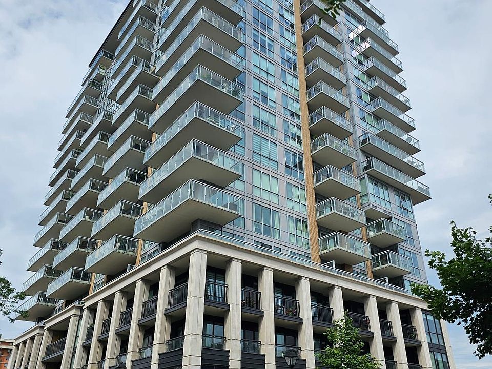 Luxury building with premium Concierge services for residents. It offers a serene location overlooking a quiet residential street with easy access to urban amenities, a modern and stylish interior with high-end finishes, bright living area with floor-to-ceiling windows, eat-in kitchen with a center island, providing extra counter space and breakfast bar, under-cabinet lighting, stainless steel appliances, Quartzite counters & glass subway tile backsplash. Large den offers flexible space that could be used as a second bedroom if needed. Walk in Laundry & two full bathrooms with large vanities. Terrace (8 feet x 9 1/2 feet) with eastern & southern views.