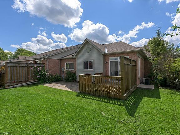 Welcome to Coventry Walk - a highly sought after private enclave of adult-oriented homes! This beautifully maintained GATED complex offers convenient one floor living, easy access to the 401 & some of the best condo amenities around! "The Centre" provides owners with a heated in-ground pool, gym, party room, library & outdoor multi-seat patio overlooking the lush landscape & fountain. This bright end unit offers a single car garage, 2+1 bedrooms, finished lower level. main floor laundry, patio doors to deck and patio.