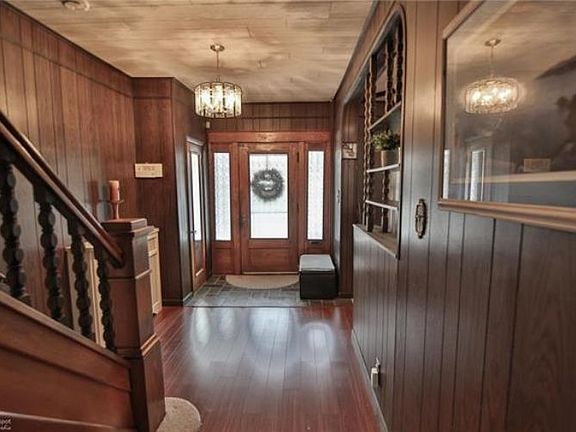 An inviting front porch and the welcoming foyer entry greet you as you enter this beautiful brick colonial home. The 3 Bedroom 1 1 2 bath interior is decorated with original wood trim, and wood beam ceilings throughout. You will be pleasantly surprised with the spacious rooms this home has to offer. An oversized kitchen boasts plenty of counter space, an abundance of cabinets, a gas stove, plus a light and bright breakfast nook that leads to an outdoor deck. Adjacent is a delightfully roomy formal dining room and living room accented with an electric fireplace. This home features central air, gas heat, fenced in yard, a finished 3rd floor, a amazing basement that is fully finished w modern half bath, a nice size laundry room with utility sink, and walkout to garage. You can't beat the convenient location to shopping and restaurants, plus easy access to routes 22, 78, and 33. Property is also zoned for some types of business purposes.