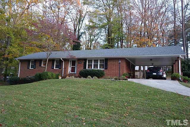 Immaculate brick ranch, new replacement windows, hardwood floors, main level w spacious living & gas log FP & bookcases, dining room, eat-in kitchen w/appliances; 3 BRs, 2 baths (1 updated w/tile); full finished walk-out basement consisting of large rec/bonus room w/fireplace, bath, bedroom, utility room, workroom, office area. Drive through carport, large patio area off family room, detached storage/workshop, privacy fence; Updates - roof 2013; heat pump 2007; window & fence 2014; large corner lot.