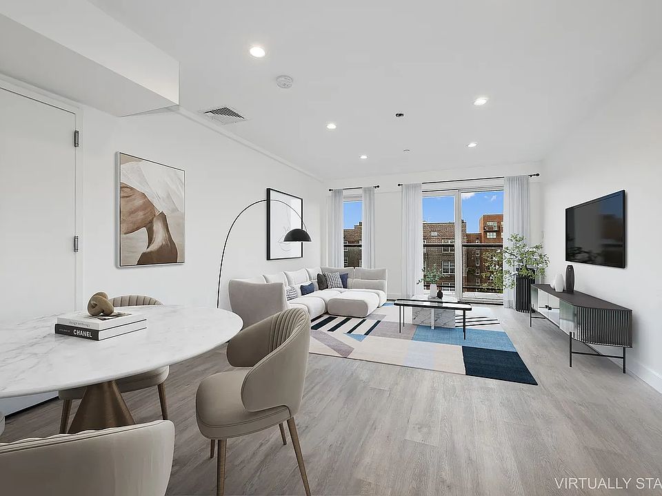 WEEKDAY SHOWINGS ARE AVAILABLE BY APPOINTMENT. Welcome to 2025 Ocean Avenue a perfectly scaled collection of 1-bedroom, 2-bedroom and 3-bedroom residences. Located in Midwood, just minutes away from Kings Highway active shopping corridors. Enjoy all of the luxuries of new construction as well as comfort and convenience that is offered by this neighborhood. Unit 1B is a spacious and inviting 1 bedroom / 1 bathroom with a large outdoor space with access from both living room as well as bedroom! As you enter this home you are welcomed by linear kitchen that flows into a spacious dining/living area. Enjoy the convenience of space with this roomy King-sized bedroom with ample closet space. What makes this unit standout is that you can appreciate the afternoon sunlight from its west exposure throughout the entire home. The Kitchen is outfitted with Germany imported cabinetry with soft closing mechanism, quartz countertops and modern backsplash, under-cabinet lighting, stainless-steel appliance by Bloomberg, featuring 5 burner stove with illuminated knobs, Stainless steel dishwasher, and microwave with an exhaust vent. The bathroom feature porcelain tiles, toilet with dual flush, vanity with storage, medicine cabinets, and whirlpool soaker tub with jets featuring handheld and fixed rain shower head! All residences feature large, German imported, triple pane - sound proof, tilt and turn technology windows allowing you to maximize natural light throughout your home. They also include central heating and cooling with individual room thermostats. A washer/dryer is added in every residence for further convenience. Welcome to 2025 Ocean Avenue. We hope to see you soon! Please inquire to visit our open house by appointment. All measurements are approximate. Images are renders that were virtually staged. Pictures Represent Various Layouts. The complete offering terms are in an offering plan available from the File No: CD 19-0199