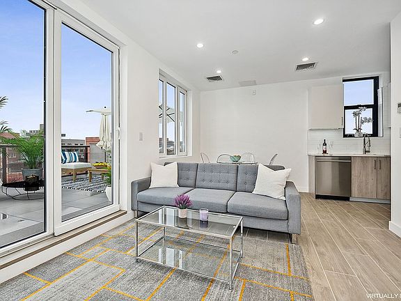 IMMEDIATE CLOSINGS! WEEKDAY SHOWINGS ARE AVAILABLE BY APPOINTMENT. This building is approved for a 1st-time homebuyers program. First time buyers may qualify for a loan with a 5.875% fixed interest rate for 30 years. Please note that the interest rate is subject to change. Don't miss out on this limited-time offer. Welcome to 2025 Ocean Avenue a perfectly scaled collection of 1-bedroom, 2-bedroom and 3-bedroom residences. Located in Midwood, just minutes away from Kings Highway active shopping corridors. Enjoy all of the luxuries of new construction as well as comfort and convenience that is offered by this neighborhood. Unit PH7B is a spacious and inviting 2-bedroom / 2-bathroom railroad style layout with not one, but 2 private outdoor spaces! On the left side from the entrance, you have the kitchen that leads further into the dining/living space which is flooded with natural light from the west facing exposure and has an extra-large terrace with amazing views! The Kitchen is outfitted with Germany imported cabinetry with soft closing mechanism, quartz countertops and modern backsplash, under-cabinet lighting, stainless-steel appliance by Bloomberg, featuring 5 burner stove with illuminated knobs, Stainless steel dishwasher, and range hood with an exhaust vent. The kitchen also has a window allowing in fresh air and natural light flow. Both Bedrooms are down the hall on the right side of the entrance. Enjoy the convenience of space with these roomy King-sized bedrooms with ample closet space and large windows. The bedrooms have east facing exposures and a long balcony with access from both of the two bedrooms. The bathrooms feature porcelain tiles, toilet with dual flush, vanity with storage, medicine cabinets. The guest bathroom has a whirlpool soaker tub with jets featuring handheld and fixed rain shower head and the primary bedroom has an en-suite bathroom with a stall shower. All residences feature large, German imported, triple pane - soundproof, tilt and turn technology windows allowing you to maximize natural light throughout your home. They also include central heating and cooling with individual room thermostats. A washer/dryer is added in every residence for further convenience. Welcome to 2025 Ocean Avenue. We hope to see you soon! Please inquire to visit our open house by appointment. All measurements are approximate. Images are renders that were virtually staged. Pictures Represent Various Layouts. The complete offering terms are in an offering plan available from the File No: CD 19-0199