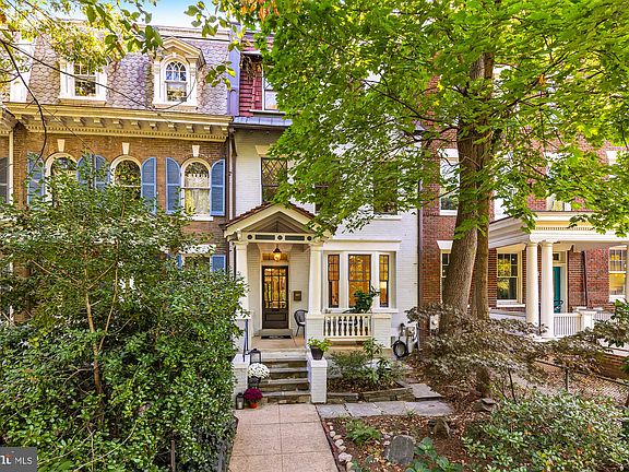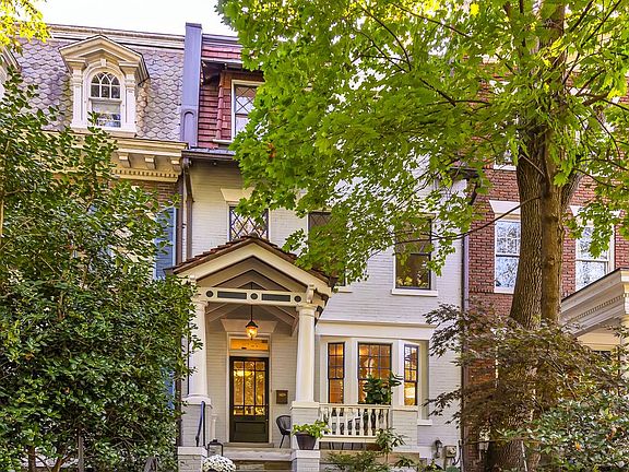 Quietly tucked away in Historic Mount Pleasant, this charming, move-in ready rowhome is located just one block from the trails of Rock Creek Park. Featuring five bedrooms and three bathrooms spread over four generous levels, the interior boasts over 3,050 estimated square feet of living space. Upon entering the spacious foyer, you are greeted by restored hardwood floors, crown moldings, high ceilings, and fabulous original details throughout. Entertain in your spacious living room with French doors and a beautifully-tiled fireplace or dine in your formal dining room, which boasts original wood details and leaded-glass cabinetry. The kitchen features stainless steel appliances and white cabinetry and opens directly to the oversized backyard. The second floor features a large primary bedroom with a Juliet balcony and walk-in closet with Elfa Storage Solutions. A grand second bedroom or family room/office sits at the front of the house and a bright shared hall bath with a claw-foot soaking tub completes the second floor. The third floor boasts another beautiful hall bath, a third bedroom with a private roof deck, and a generous fourth bedroom. On the lower level, a laundry room connects a fully updated in-law suite to the main house. A third bathroom, second kitchen, open-concept layout, and separate front and rear access make this the ideal space for family or guests. Outdoor space abounds in this special Mount Pleasant home. Enjoy the huge private backyard all season long. The yard has been thoughtfully updated with a flagstone patio and two large deck spaces leading to the private garage. Customize the space to suit your needs - perfect for lounging, dining, or playing! Enjoy proximity to the National Zoo, Bancroft Elementary, shopping & dining along Mount Pleasant Street, and easy access to Connecticut Ave NW and Beach Drive all in one of DC's most sought-after neighborhoods. Welcome home!