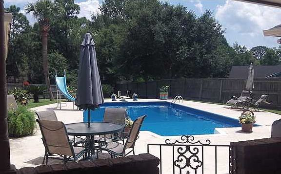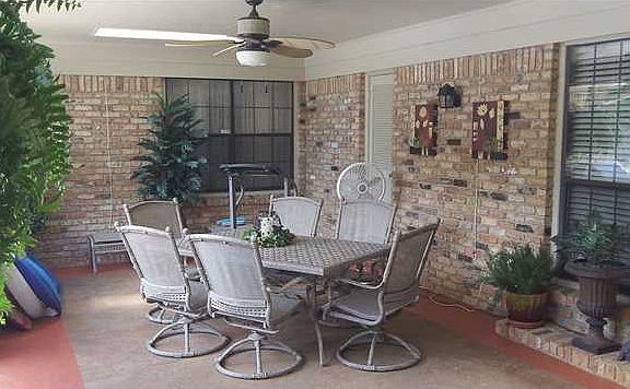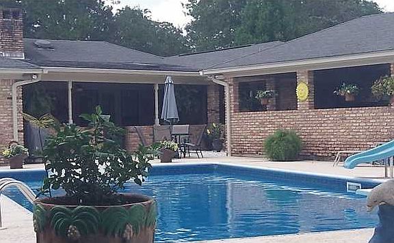 This home could get yard of the month year round and the back yard and inside are just as spectacular! A new pool liner, pump, motor , and covered back porch make the fenced flat back yard an oasis retreat! Inside has new countertops throughout, hardwood floors in all living area and hallway, crown molding, tile in kitchen and nice lighting. The outside has a newly paved extra long driveway, new roof in 2008, and replaced AC in 2008 also. An irrigation system was installed in the front yard in 2008 as well as a separate faucet for it and the pool to cut cost on the water bill. Seller will leave for their convenience with an acceptable offer. Two couches in formal living room, three tables, two lamps, outside table with six chairs, two ottomans, 1 side table, 1 recliner, umbrella with stand, two clay pots, grill and hanging ferns. The attic is floored for extra storage. Don't miss this move-in ready home!