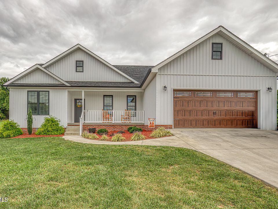 Looking to live in Johnson City with the benefits of living in Carter County? This beautiful new construction is for you! 3 BR / 2BA. This home has an open floor plan that features one level living. The property is over a half acre of flat and level land in a great neighborhood. House measures approximately 1,588 sq/ft. As you enter the front door you will be greeted with a beautiful high vaulted ceiling with 9ft. ceilings throughout. With 3 bedrooms and 2 baths this home is the perfect family residence for any age. Hardwood flooring, granite kitchen counter tops, and high end cabinets gives a very polished and luxury atmosphere. Each bedroom is very spacious including a large master suite that features a beautiful tray ceiling. Covered front and back pouches makes it ideal for hosts friends. Property also features a large level back yard and an attached 2 car garage. A thoughtful, professional landscape puts the finishing touches on a lovely mountain estate with city conveniences.