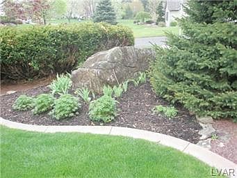 Beautiful Ed Mertz home w/ covered front porch, stamped concrete patio w/ awning in back and very private backyard w/ holiday lighting package. Kit has 2 islands and large area for your Kit table w/ lots of light coming in through the windows. Very large Kit pantry, mud rm from garage and 1st floor laundry room. Family rm is quite comfortable w/ FP. The study can be closed off by french drs. Upstairs the master suite is very large w/ huge walk-in closet. The en-suite BA has private commode; cathedral ceiling and large jetted tub. 3 other bedrooms make up the 2nd flr w/ additional BA and large sitting area at the landing. There is a bonus rm on the 3rd flr which adds an additional 400 sq.ft. completed w/ BA. Wegmans 1.5 miles. Hanover Township pool and recreation Center .7 miles away and St. Lukes Lifestyle Center Gym is close by too. 6 ceiling fans to help with cooling. Carpets just cleaned. Extruded concrete edging around the house make lawn care easier.
