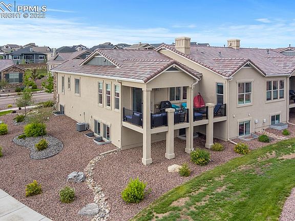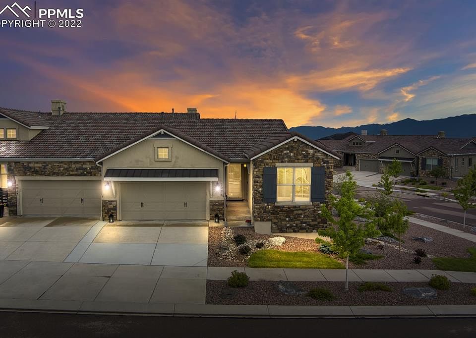 MOTIVATED SELLER: Beautiful, better-than-new paired patio home in Flying Horse! Relax on the main level deck with a fabulous view of the Front Range and Pikes Peak and a park-like corner lot. Contemporary styled interior with white shaker cabinets, quartz countertops, and multi-toned wood laminate floors that are aesthetically beautiful and extremely durable for family members and pets. Kitchen Aid appliances, expansive counter space, tiled backsplash, breakfast bar, pantry, and under-cabinet lighting makes the great room/kitchen the "center" of the home. The main level offers a bedroom/office near the front door with the master suite tucked towards the back with double vanities, luxurious shower, and spacious master closet. Downstairs the garden level basement with 10 ft ceilings provides a flood of light with additional family entertainment space and two bedrooms, two bathrooms, and tons of storage. Additionally, this home abounds with "smart" technology such as a NEST thermostat, Ring doorbell, security system, CAT-6 wiring, and in-ceiling speakers. MAINTENANCE FREE EXTERIOR to include landscape maintenance AND snow removal leaves plenty of time for hobbies/activities such as golf, tennis, or swimming at the nearby Club at Flying Horse. The lifestyle and amenities at Flying Horse are among the primary reasons why home buyers choose to live in this one-of-a-kind community. They offer a very special way for residents and their families to get to know neighbors and socialize in a variety of settings. Amenities include the Athletic Club and Spa, private dining in the Tack Room at the Steakhouse, golf, tennis, pickle ball, fitness classes and activities for everyone at the resort-style swimming pools. With flexible membership, you choose what amenities to enjoy! If lifestyle and having a new (but move-in ready) home are important to you...THIS HOME IS A MUST SEE!