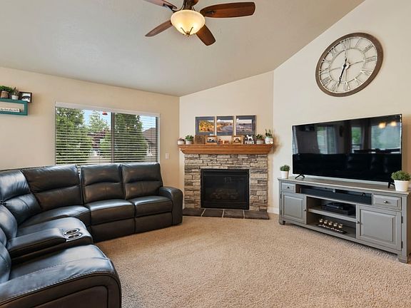This is a must see Ivory Home. It was built in 2007 with one home owner. Home is all Stucco/Stone. It is in immaculate condition. This home has 3 bedrooms, 2 baths and 3rd car Garage. Living area has vaulted ceilings and fireplace. Bay windows in Dining Area and Master Bedroom. There is lots of natural light throughout. The lot is .21 acres WEST facing for afternoon shade in the backyard! Yard is professionally landscaped with night lighting and vinyl fence. Home has great curb appeal with fully landscaped front with automatic sprinklers. Backyard is great for entertaining with large patio, natural gas fire pit, natural gas BBQ, playground and garden. Flowers, bushes, trees and fully irrigated with automatic sprinklers and drip system. Great location close to schools, shopping, theaters, restaurants, HAFB, Parks, Bike & Walking Trails, Library plus you're only a quick 3 minutes to Freeway.