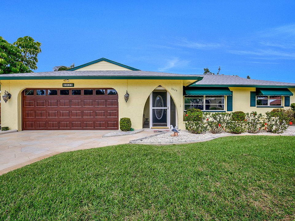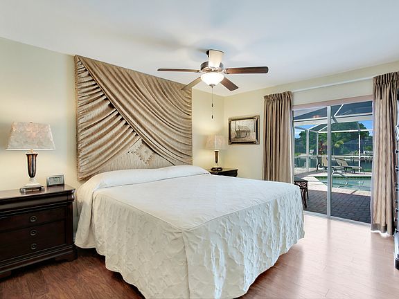 Highly desirable SAVONA neighborhood. All the bells and whistles here. Oversized Corner lot heated POOL home with a VIEW of the large canal. Open great room style home with wood cabinets, granite counter tops, stainless, quality appliances, both tile and hardwood floors, raised panel doors. Master bath has a clear glass shower doors and the tub surround tile in the main bath is upgraded. All the following items were done in 2017--the roof, pool heater, pool screens, irrigation and commodes. 2016--window in kitchen replaced, 2015--A/C replaced, driveway widened, hurricane garage door, and hardwood floors in the bedrooms. Lush tropical landscaping. The large spacious lanai features brick pavers and the driveway is stamped concrete.. The pool has an electric pool heater. Glassed front entrance door. Entrance is screened and tiled for those nice Florida breezes. Extremely well maintained home and sold furnished. Florida living at its finest. Close to restaurants and shopping and across the street from the river. Enjoy the water view from this well appointed home. The best of both worlds!
