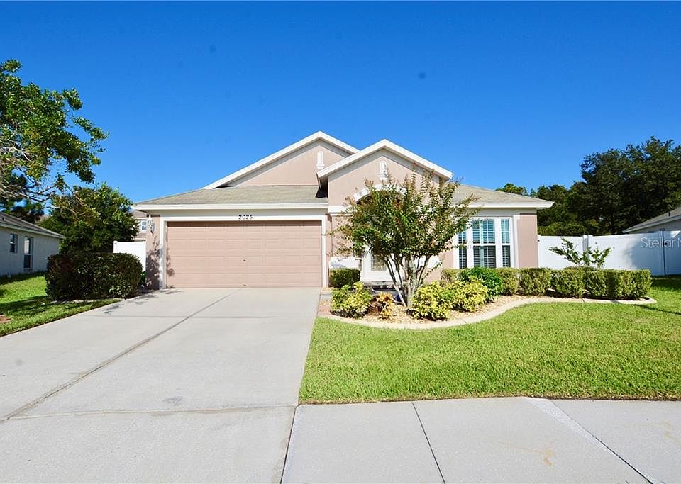 Welcome home to the Gated Community of Meadow Pointe. This 1959 sq ft, 4 bedroom, 2 bath, 2 car garage home rests on .31 acres of land in the highly sought after Rensselaer Community. Enter into the elegant formal living room and dining room with vaulted ceilings perfect for greeting and hosting guests. Entertaining is easy in the updated eat in kitchen and family room. The kitchen features solid hardwood cabinets with soft close features, quartz countertops, stainless steel dishwasher, microwave, range with double oven, refrigerator. The archway leads you to the family room showcasing vaulted ceilings and French doors which provides access to the covered and paved lanai. Pavers run along the back and side of the house. The Master ensuite is tastefully appointed with vaulted ceilings, spacious master bedroom with a large walk-in closet, master bath with dual sinks, garden tub, separate shower and linen closet. The additional 3 bedrooms are carpeted, spacious and roomy. Kitchen appliances come with a 5 yr Warranty. Irrigation system installed in the backyard. Double paned windows are Hurricane Resistant and also come with hurricane covers for added protection. The Meadow Pointe community offers a fitness center, beach volleyball court, playground, pool, shuffleboard, tennis courts to name a few features. Conveniently located to The Shops at Wiregrass, Tampa Premium Outlets and I 75. Welcome Home! CDD to replace tree in front yard of property.