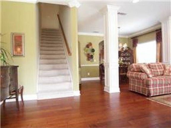 Incredibly stunning! Gorgeous handscraped hardwood flooring! Beautiful millwork! Living/Formal Dining accented w/decorative wood columns! Cozy Den w/fireplace! Main level master! Lots of closets! 14' x 8' walk-in attic! Community Pool, Tennis & Lake!