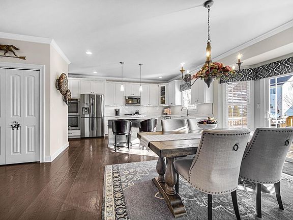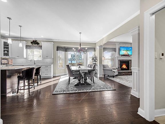 PRICE IMPROVEMENT! Why wait for new construction? Welcome home to this immaculately maintained 2 story home where all of the extras are already done for you! Gleaming hardwood floors and gorgeous crown molding usher you in to the den and main living spaces. The kitchen is a dream with double oven, classic cabinetry with quartz countertops, convenient island, and breakfast room. In the spacious living room a elegant fireplace serves as the focal point. The master suite showcases a tray ceiling, 2 walk in closets, and private bath with tile shower, soaking tub, built in vanity and dual sinks. Full unfinished basement gives you plenty of room to grow. The backyard is the perfect entertaining space with fenced yard, deck, inground sprinklers, and a beautiful custom paver patio. This home is absolutely filled with custom upgrades in every room-upgraded cabinetry, custom trim details, custom lighting, and more! It's all ready for your instant enjoyment! Schedule your showing today!
